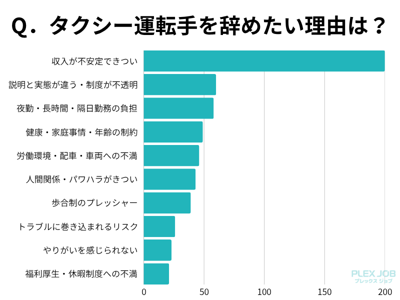 プレックスジョブをご利用いただいたタクシードライバー400名に、辞めたいと考えた理由を伺いました。