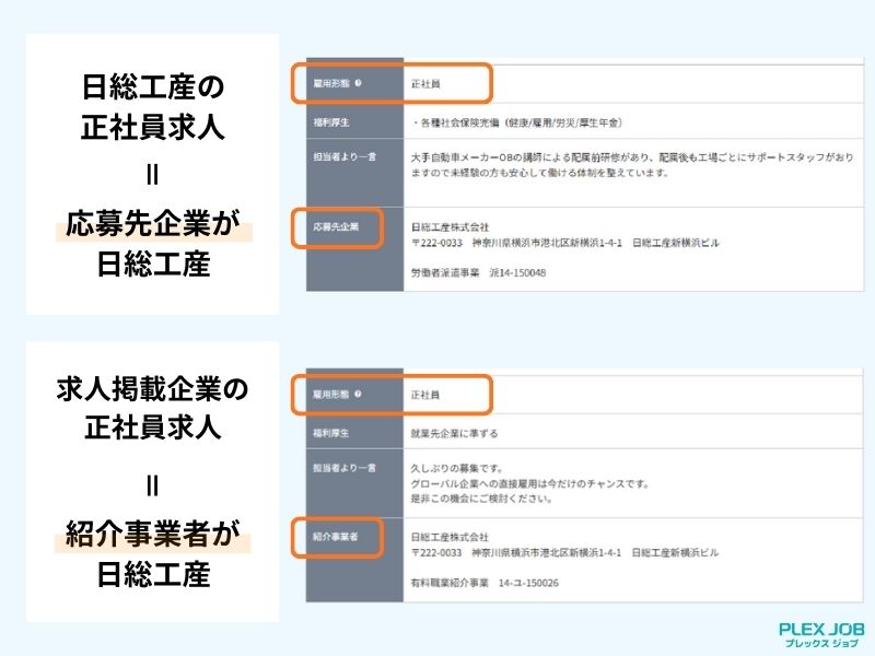 特に正社員は日総工産の社員か、求人掲載企業の社員かで待遇が変わるため、求人票の雇用欄をしっかり確認しましょう。