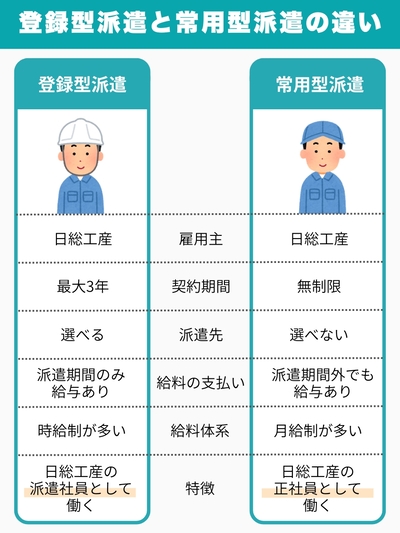 派遣には登録型派遣と常用型派遣という2パターンの働き方があります。