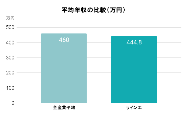 ライン工の平均年収は、全産業平均と比較してほぼ同等の水準です。