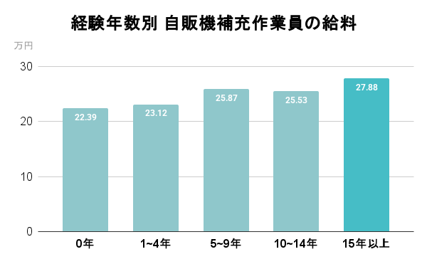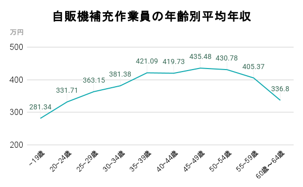 上記の表から、自販機補充作業員の年収は年齢が上がるにつれて増えていることが分かります。