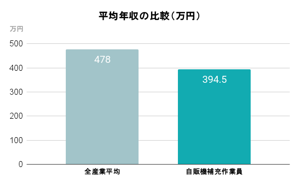 自販機補充作業員 | 約394.5万円 | 約32.8万円 |