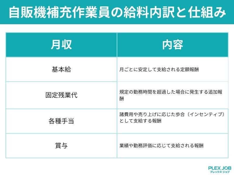 次は自販機補充作業員の給料の内訳について詳細に説明していきます。
