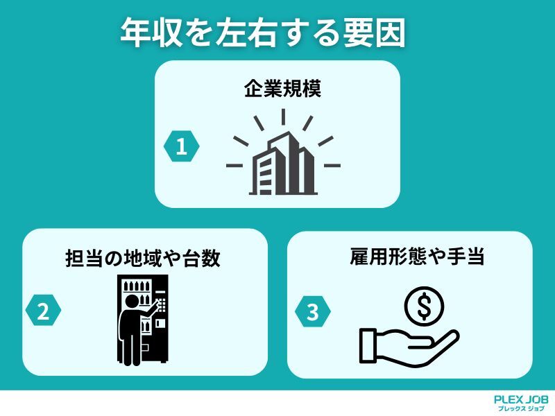 同じ自販機補充作業員でも年収は大きく異なります。その違いを生む3つの要因を解説します。