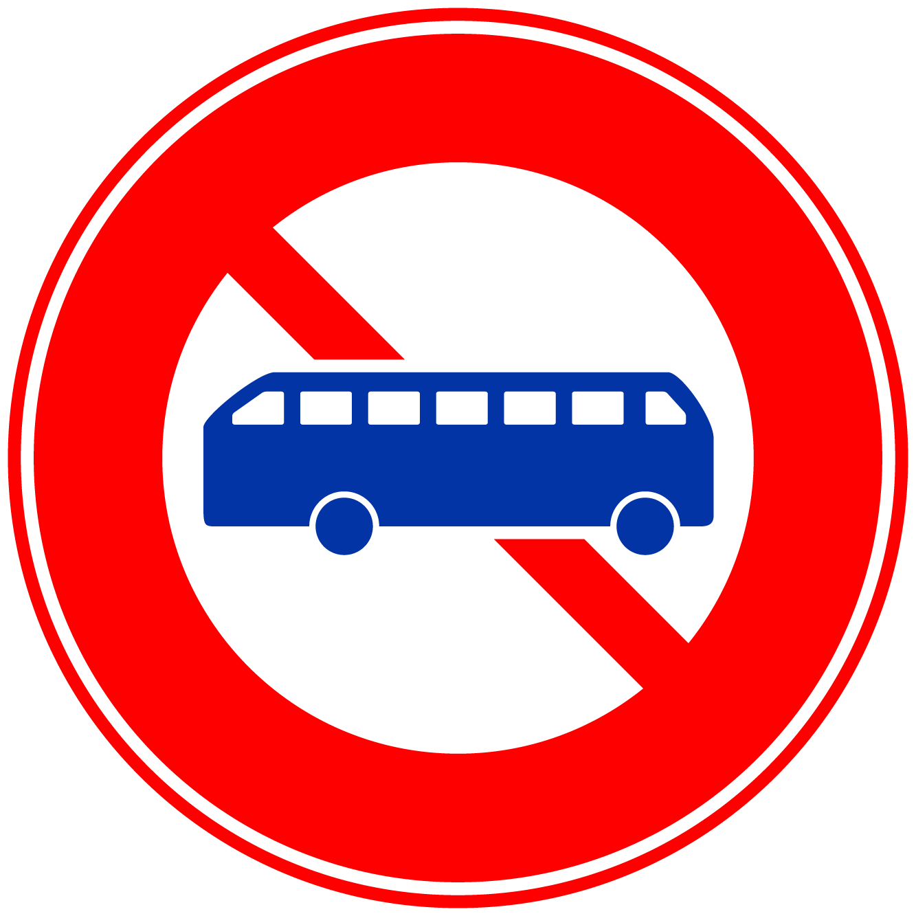 この標識から先へはマイクロバスや中型バスの進入はできません。ただし貨物自動車や普通乗用車などは通行する事ができます。